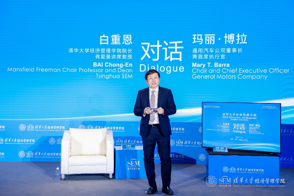 BAI Chong-En, dean of Tsinghua SEM, and Mary T. Barra, chair and CEO of GM, attended the event via video link to discuss topics such as technology, carbon neutrality and talent cultivation.