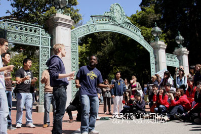 Tsinghua Week at Berkeley featured keynote speeches delivered by famous scholars and a series of academic sessions jointly arranged by faculty members from the two universities. They covered a broad spectrum of subjects, including energy and environmental issues, higher education, literature and history, poverty alleviation, development of new technologies, business innovation and entrepreneurship, and other academic and administrative topics. Alongside these academic activities, a Tsinghua Photo Exhibition featuring the university's development and works from its Academy of Arts & Design was also held on the campus. The Tsinghua student representatives also had extensive interaction with their Berkeley peers. Besides the tour on campus, 44 members of the Student Art Troupe performed Chinese folk dancing and traditional music together with a renowned men's a capella octet from UC Berkeley. Speaking on behalf of the host institution, Executive Vice-Chancellor and Provost George Breslauer summarized the main activities, especially the academic panels, held during the Week at the closing ceremony: "It is an unprecedented event on this campus to host a full delegation of faculty members and students of a leading foreign university that is led by its senior academic leadership." Tsinghua Vice President YUAN Si commented that Tsinghua Week had been fruitful. The mutual understanding of both faculties and students has been increased, and the academic exchanges deepened. "It constructs a stronger basis for further collaboration between our two institutions," said Vice President Yuan.