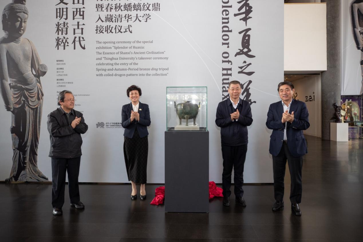 A takeover ceremony was also held to celebrate the induction of a Spring-and-Autumn-Period bronze ding tripod with coiled-dragon pattern into the collection of Tsinghua University.