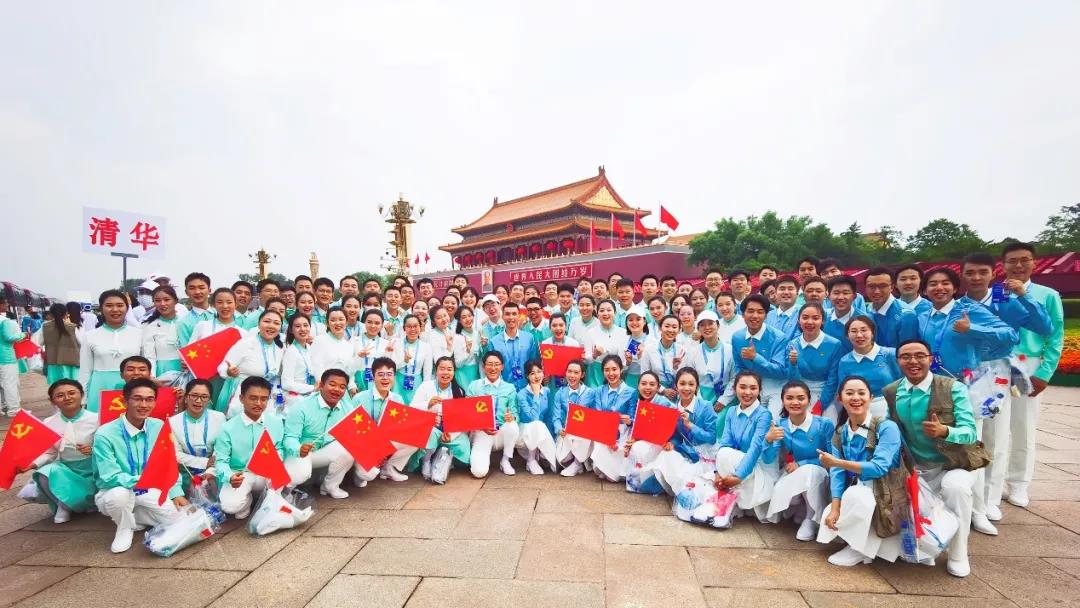 在天安门、国家体育场,1200余名清华师生参加系列庆祝活动的志愿服务和各项支持保障工作,在现场深情表达对党的热爱。“请党放心,强国有我!”成为参加活动师生的一致心声。