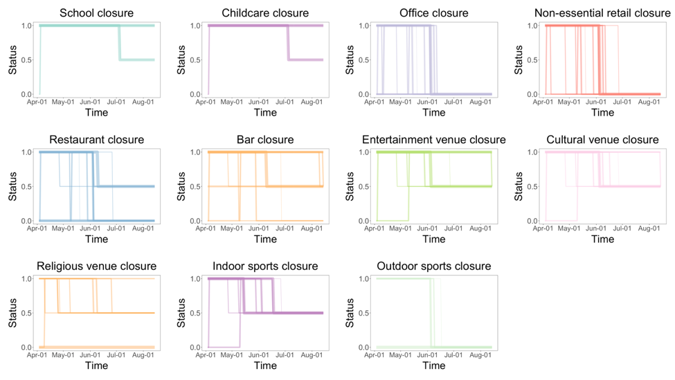 图1.2020年3月至8月所有样本城市11类人群活动场所的开闭变化