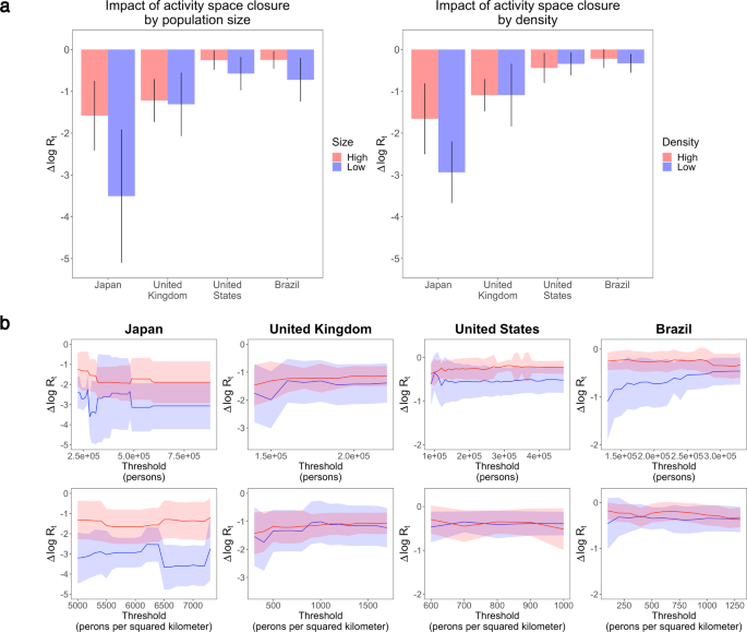 在较为微观的场所尺度层面,研究识别了上述11类人群活动场所开闭对疫情传播的影响。研究发现,虽然各类活动场所的疫情传播风险在不同国家存在差异,但体育、娱乐和餐饮场所的传染风险总体较高;研究还发现,发生于上述公共活动场所的疫情传播在中小城市占比更高。针对城市尺度,研究提取了所有样本城市的疫情传播固定效应,分析了这一固定效应与城市规模、密度以及人口社会经济特征的关联。研究发现,城市尺度的疫情传播风险并不随城市规模、密度而增加。