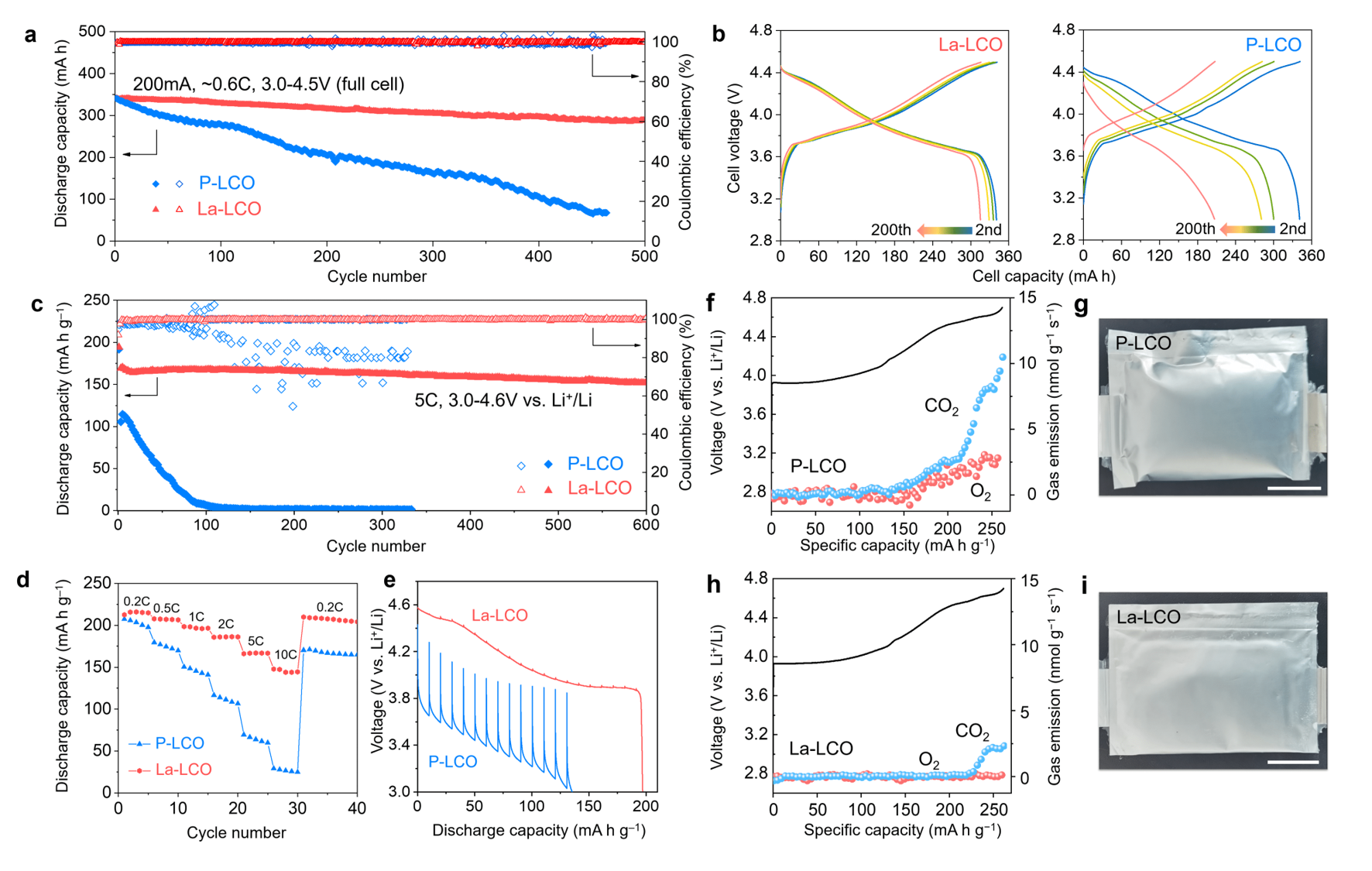 渗镧高压钴酸锂正极的电化学性能和产气表征