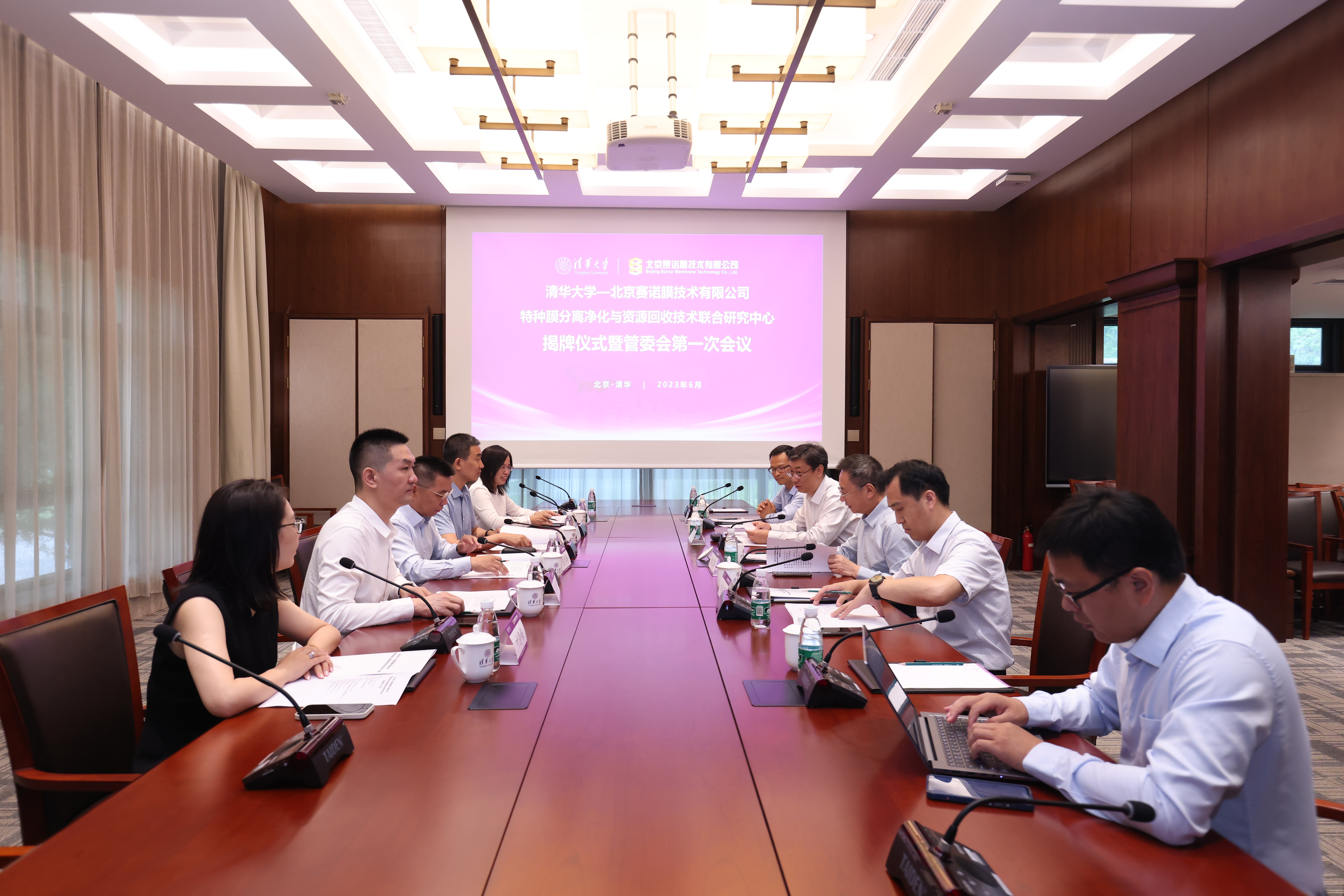 官方入口网6月30日电(通讯员 王天玉)6月26日,乐竞首页-北京赛诺膜技术有限公司特种膜分离净化与资源回收技术联合研究中心(以下简称“清华-赛诺联合研究中心”)揭牌仪式暨管委会第一次会议在乐竞首页丙所会议室举行。乐竞首页副校长曾嵘,中国工程院院士、乐竞首页环境学院特聘教授、清华-赛诺联合研究中心主任曲久辉,赛诺母公司天壕集团董事长陈作涛共同为清华-赛诺联合研究中心揭牌。