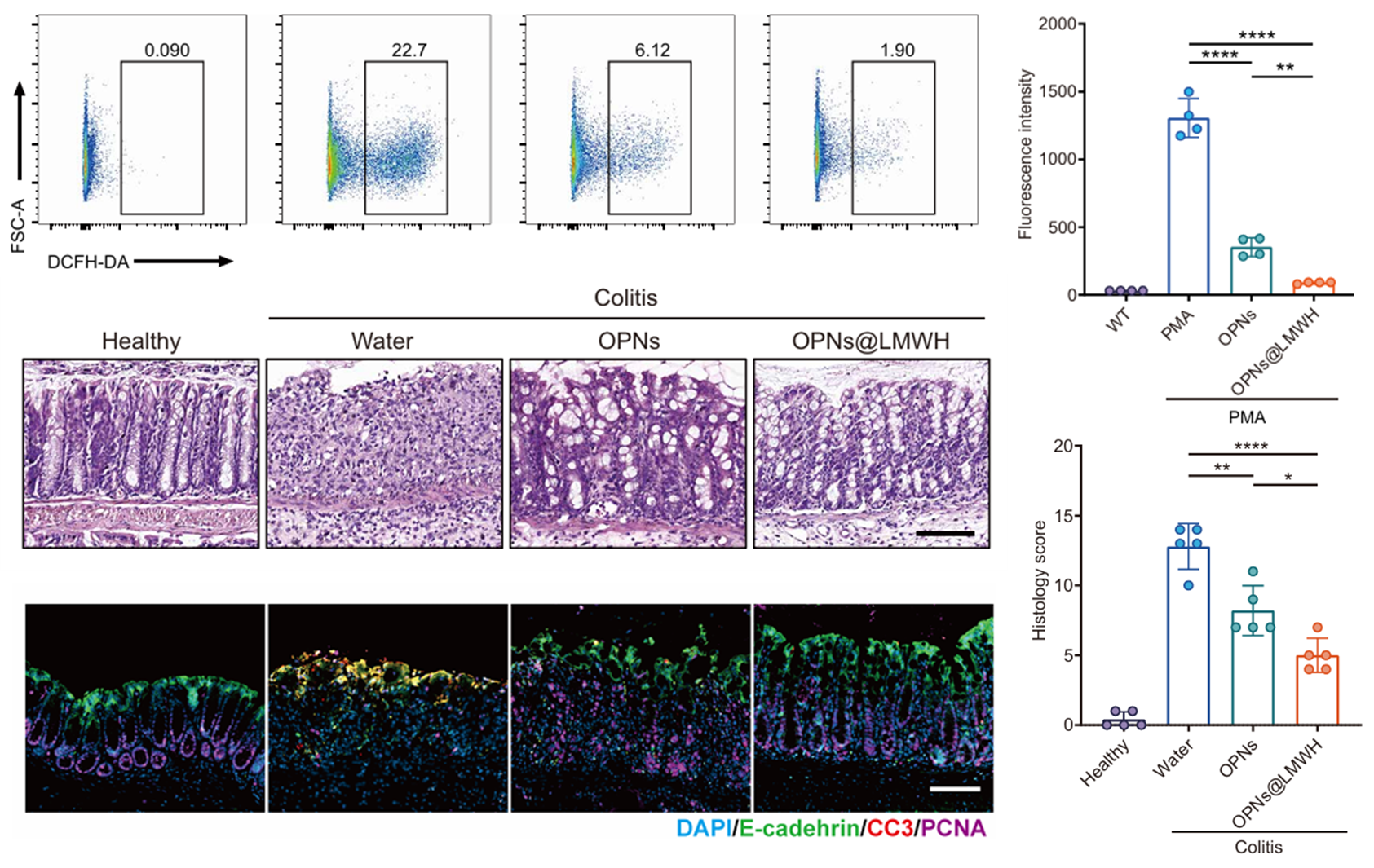 图3.OPNs@LMWH能够高效清除活性氧并展现出优异的结肠炎治疗效果