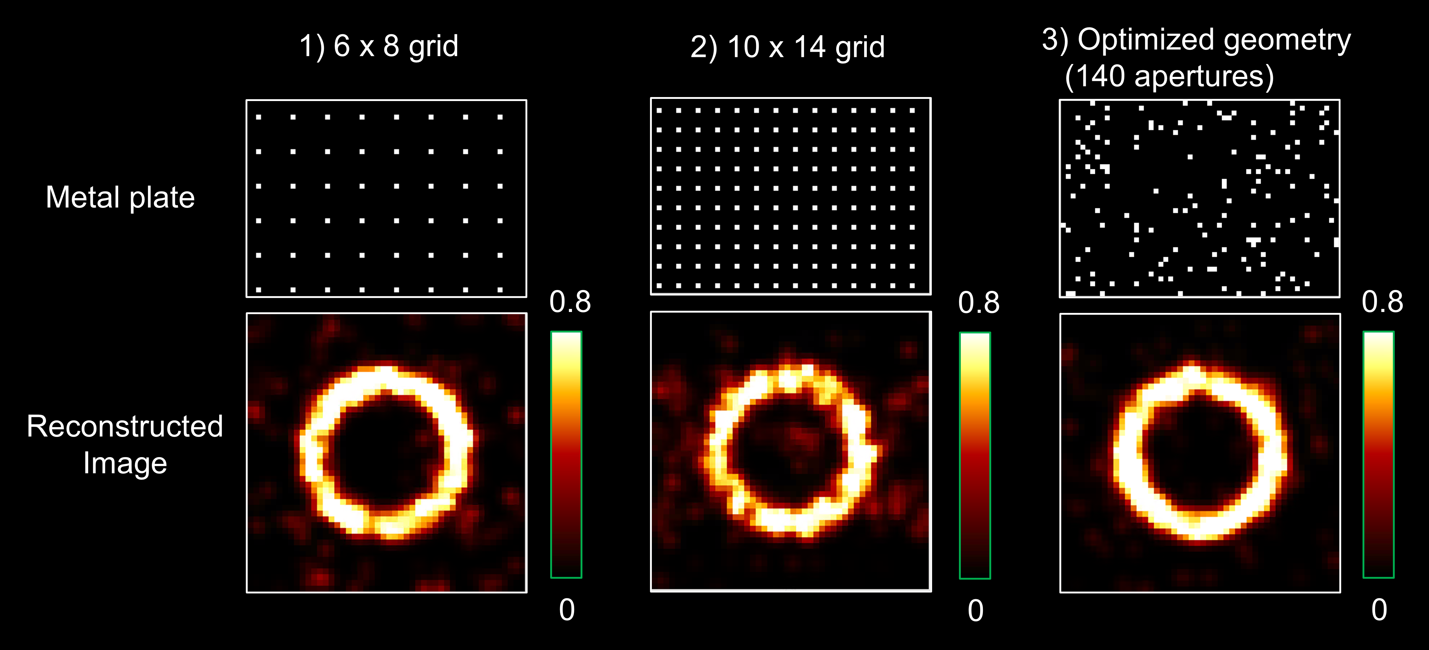 本研究工作基于原始创新自准直成像原理,提出了快速成像的心脏专用SPECT设计。其多层棋盘结构自准直探测器兼顾准直和探测双重功能,从根本机理上解决了机械准直器的技术瓶颈问题;通过设计乱序排布的高开孔率金属板,进一步减少光子混叠(Multiplexing)效应对图像质量的影响,提升成像系统信噪比。蒙特卡罗模拟结果表明,所设计的成像系统在直径19cm的球形视野内达到4mm空间分辨率和0.68%平均探测效率,可以在2s扫描时间内识别出心肌模型中的缺血区域。研究工作对大幅度缩短扫描时间、提升图像质量、提升病人通过率和减少辐射剂量具有重要意义,有望带来SPECT心脏成像技术的革命性突破。