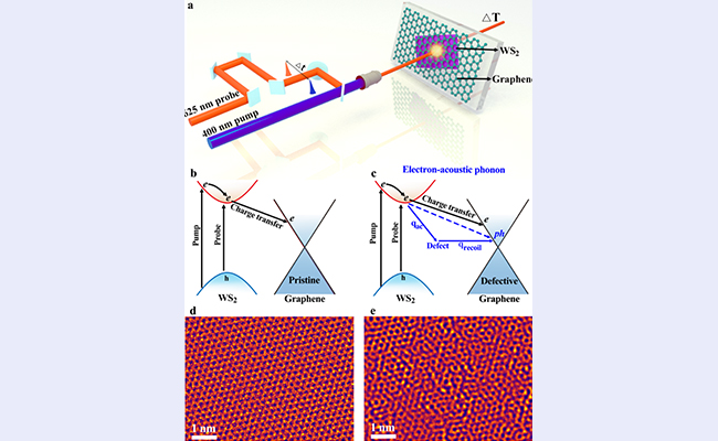 图1.飞秒瞬态吸收成像技术探测原子级缺陷辅助电声耦合过程的示意图