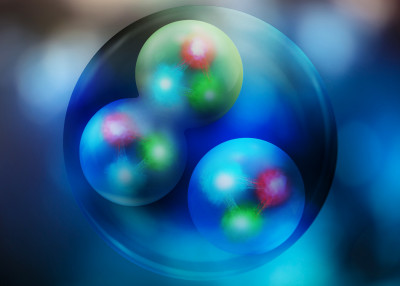 攻克这些难题的关键途径之一就是系统研究原子核内部一种极端的基态,即核子间的短程关联(Short-Range Correlations,SRC)。当两个核子相互靠近时,其吸引力逐渐变强并使核子部分重叠(如图1),靠得更近之后,排斥力逐渐变强,以避免其完全重叠。在短程关联状态下,核子对的相对动量极高,但总动量又极小,所以原子核总体仍处于基态。实验测量证明,SRC核子占据了原子核内20%的基本量子态。由于SRC核子对高度重叠,描述核子间作用力将无法忽略核子内部的夸克和胶子结构。同时,SRC核子对也具有超高的密度,其性质类似于中子星的内部环境。所以精确研究SRC核子的物理机制,不仅能够在微观上完善核子间作用力的理论表述,也可以在宏观上解释天体的内部结构和演化。