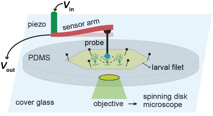 10月6日,乐竞首页生命学院、清华-IDG/麦戈文脑科学研究院梁鑫副教授课题组在《e生命》(eLife)期刊上在线发表了题为“果蝇机械痛觉感受器优先感知局部刺痛”(Drosophila Mechanical Nociceptors Preferentially Sense Localized Poking)的研究论文。该论文利用自行搭建的“机械力-光学”联用装置(图1),对果蝇c4da痛觉神经元进行了原位机械力刺激,并同步记录和分析了神经元对不同类型力信号的响应(图2)。