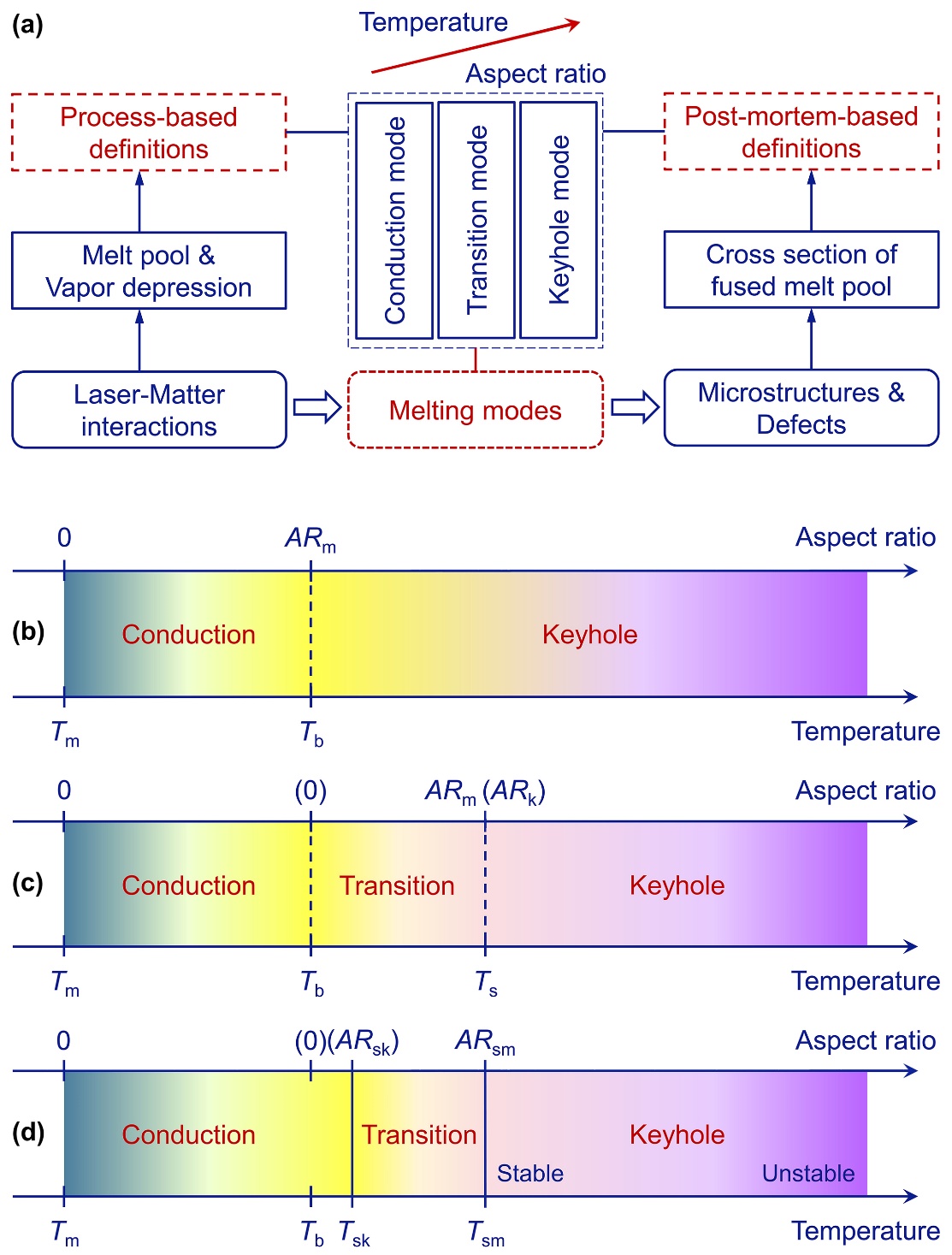 官方入口网10月24日电 在过去的三十多年中,金属增材制造技术(俗称金属3D打印)快速发展,对航空航天、汽车、国防、化工、医药、能源等领域产生了深刻变革。激光粉末床熔融增材制造(亦被称作激光选区熔化)是其中最广泛使用的技术之一。然而,迄今为止,学术界对激光-物质相互作用的认识还不够深刻,对激光熔化模式的定义仍然很模糊、尚未达成共识。这使得制造无缺陷、微观结构可控的构件仍有困难,限制了激光粉末床熔融增材制造行业的进一步突破。