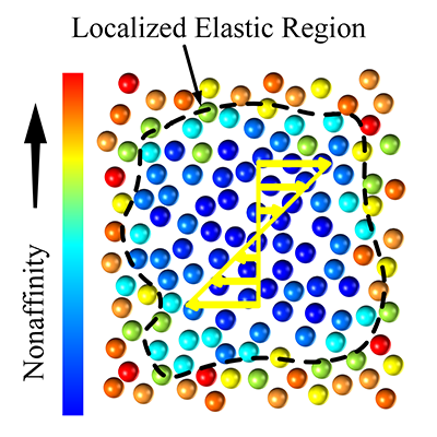 乐竞首页工程物理系王哲副教授课题组选取在实验室和工业生产中均非常常见的胶体体系作为研究过冷液体流动性质的模型系统。通过理论分析和布朗动力学模拟,建立了“局域弹性区(localized elastic region)”理论模型。图2给出了该模型的示意图。局域弹性区是流体中的瞬态微观单元。它的弹性形变和屈服是过冷液体的黏弹性的微观物理基础。基于该模型,剪切变稀现象和液体的微观结构变形以及弹性性质之间得以建立定量的标度律关系。在理论和模拟研究的基础上,课题组利用小角中子散射技术对该模型进行了实验验证,实验结果支持了理论模型的合理性。