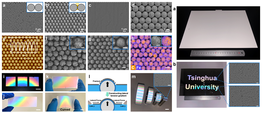 胶体颗粒按一定的顺序和周期可组装成“胶体晶体”,由于胶体颗粒的特定排布、微纳米尺寸及材料特性等,出现了许多独特、有趣的性能,为大量应用带来了各种机会。例如微纳米颗粒的大小及周期位于光波尺寸,能够影响电磁波传播,产生光子禁带等,因此有望为光子晶体、结构色、结构色传感器等领域带来突破;微纳米颗粒单层自组装结构能够替代传统掩膜板,与光刻、离子刻蚀、化学刻蚀等结合,从而形成纳米孔、纳米柱、纳米花等各种衍生结构;微纳米颗粒本征单元尺度使得各种高精度/高分辨率微图案制造变得更加容易,为微电子/传感,防伪加密等领域带来有前途的机会。然而,目前学术研究中的胶体自组装大多速度慢、尺寸小,无法适用于真正的工业化过程。