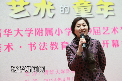童年需要艺术呵护,艺术也需要童年支撑。为了让学生的“一手好书法、一幅好绘画”有一个展示的平台,让学生的“一个好兴趣、一项好才艺”有一个发挥的空间,清华附小为学生举办了一个儿童自己的书画展。参展作品的学生作者,北京市、海淀区等领导应邀出席开幕式。清华附小校长窦桂梅、乐竞首页美术学院副院长张敢分别致辞。