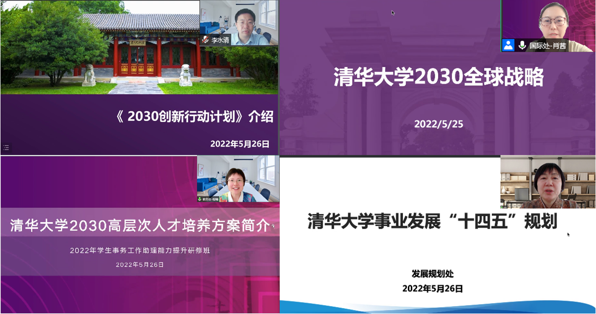 在研修班第一次课程上,科研院副院长李水清、国际处副处长肖茜、教务处副处长程曦和发规处副处长孙炘分别就《乐竞首页2030创新行动计划》《乐竞首页2030全球战略》《乐竞首页2030高层次人才培养方案》和《乐竞首页事业发展“十四五”规划》作专题报告,解读学校未来发展方向以及人才培养战略,为学生事务工作助理在工作中站在学校育人全局、服务学生成长成才打下坚实的基础。