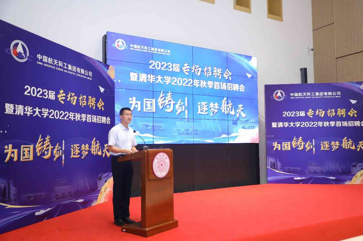 宣讲会上,袁洁以“不负时代 不负韶华 为国铸剑 逐梦航天”为题为现场毕业生同学授课,他回顾了中国航天事业66年的辉煌历程,介绍了航天科工的使命、战略、主责主业以及人才工作的思路和举措。他表示航天科工建立了完善的“三横三纵”教育培训体系,持续构建科技领军人才“雁阵格局”,将为清华学子提供建功立业的广阔舞台,欢迎同学选择航天科工,共同为建设航天科工砥砺奋进。会后,30家用人单位在现场举行双选活动,同学与各单位人力资源领导进行深入交流。