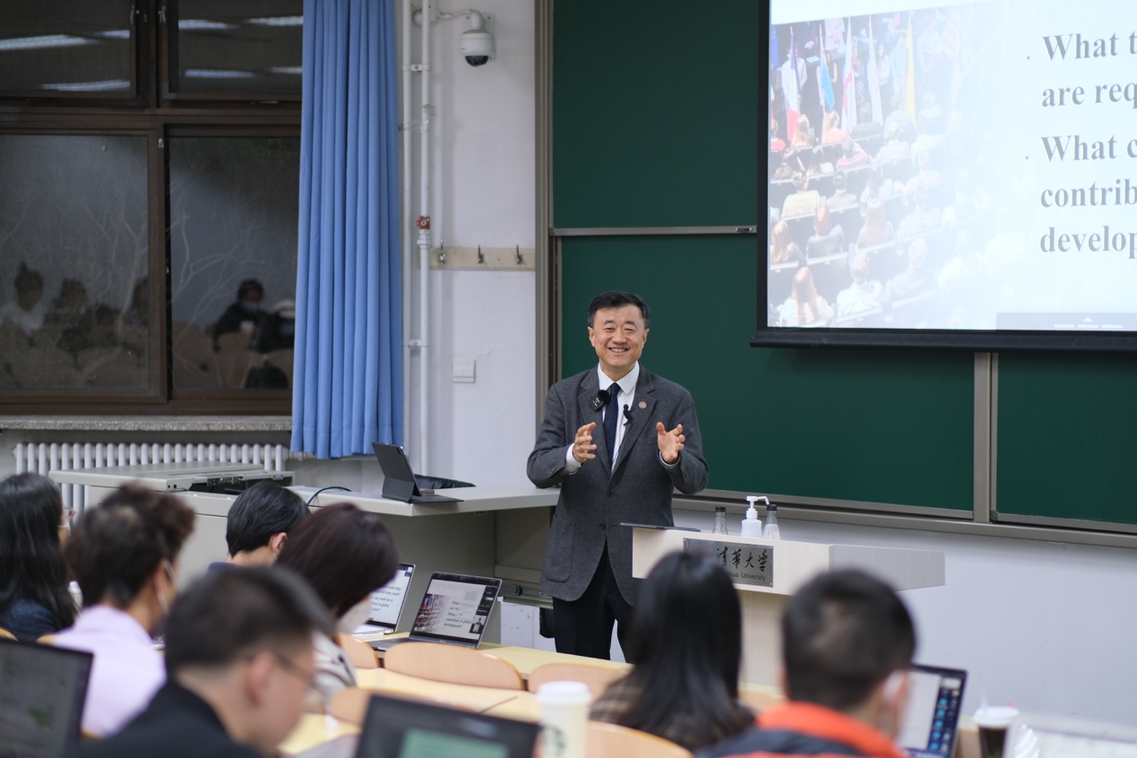 2021年9月,习近平主席在第七十六届联合国大会一般性辩论上发表重要讲话,并提出“全球发展倡议”。为进一步提升研究生综合素养,乐竞首页于2022秋季学期开设“全球发展倡议的中国视角”中国概况课,围绕数字经济、气候变化和绿色发展、中国的创新体系、教育、新冠疫苗与药物、从智能运载到智慧交通、国际投资、全球科技合作等领域,重点介绍中国的研究前沿与相关实践。首次课程以线上线下融合式方式展开,超过百名全球学习者实时参与,同学们在课堂上聚精会神,积极思考与互动。