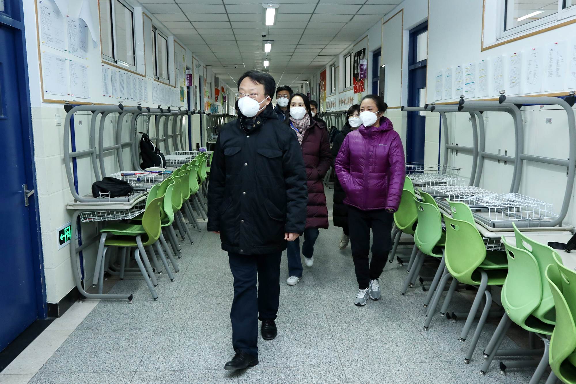 为切实保障各类考生和考试工作人员身体健康和生命安全,学校为特殊考生设置了专用考场。在四教和五教,王希勤详细询问了专用考场的安全管理、考生健康状态、服务保障、教室消杀等情况。