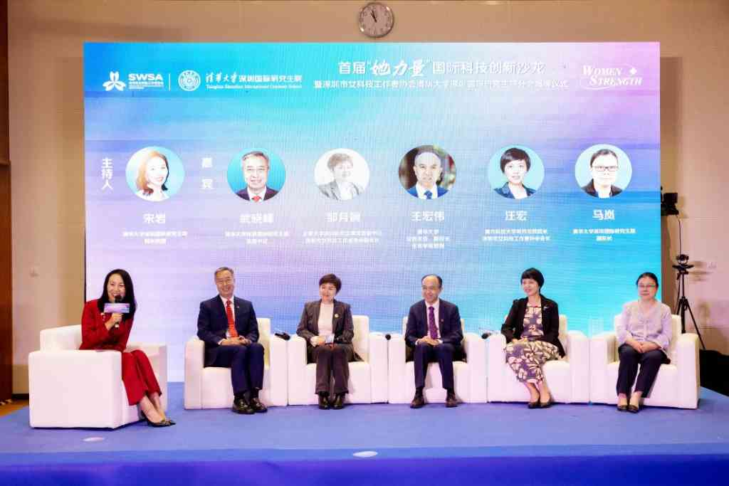 交流环节中,王宏伟,汪宏,北京大学深圳研究生院党委副书记、深圳市女科技工作者协会副会长邹月娴,深圳国际研究生院党委书记武晓峰、副院长马岚作为分享嘉宾,结合自身经历和心得体会,围绕女科技工作者在科研攻坚、学生培养、事业与生活等方面的话题分享交流。