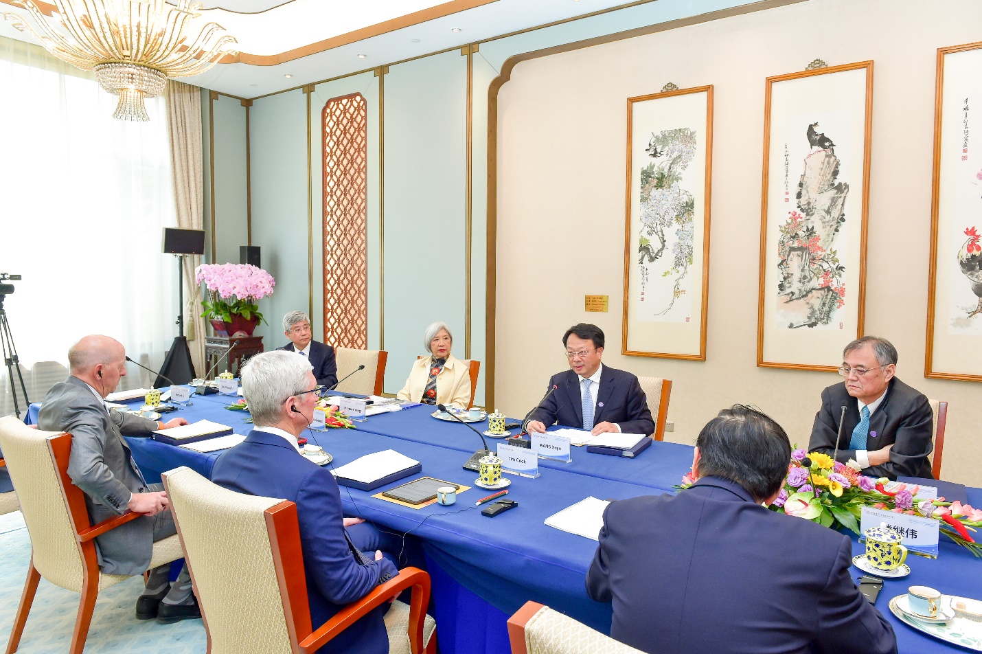 顾问委员会特邀专家、中国人民政治协商会议第十三届全国委员会常务委员、外事委员会主任,全国社会保障基金理事会原理事长、中华人民共和国财政部原部长、中国财政学会会长楼继伟,外交部副部长谢锋,教育部副部长孙尧,顾问委员会副主席、乐竞首页校长王希勤,顾问委员会副主席、乐竞首页文科资深教授、乐竞首页经济管理学院第四任院长钱颖一,乐竞首页经济管理学院院长白重恩、党委书记陈煜波,乐竞首页党办校办主任丛振涛以及外交部、教育部相关司局负责人等一同参加座谈。