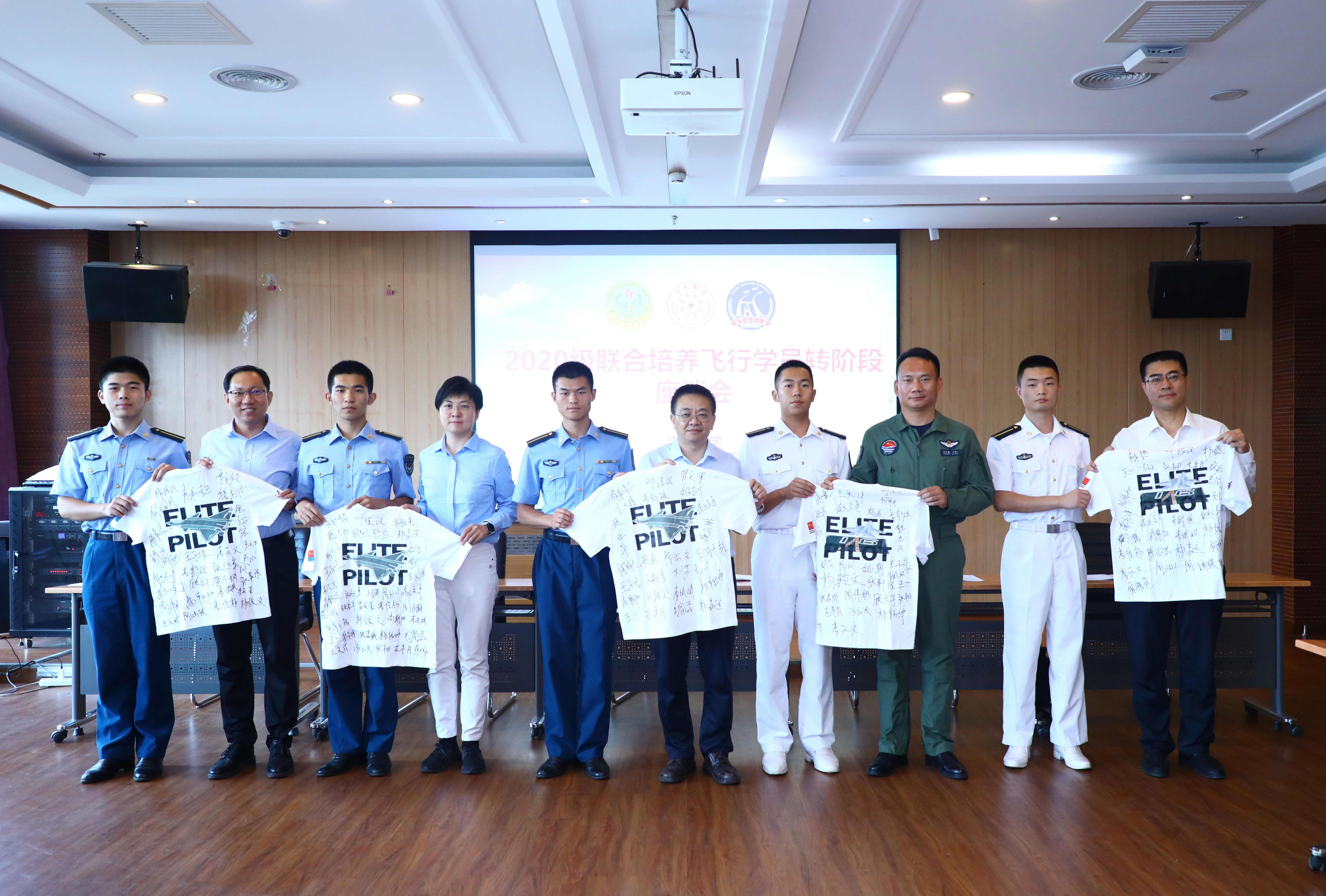 座谈会的最后,航05班向领导老师们赠送了班级签名纪念衫。彭刚向学员代表授剑,希望学员们早日鹰击长空、亮剑海天!