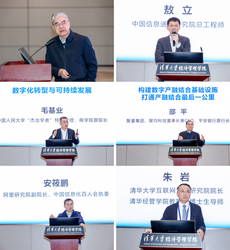邬贺铨、敖立、毛基业、邵平、安筱鹏、朱岩发表主题演讲(从左至右、从上至下)