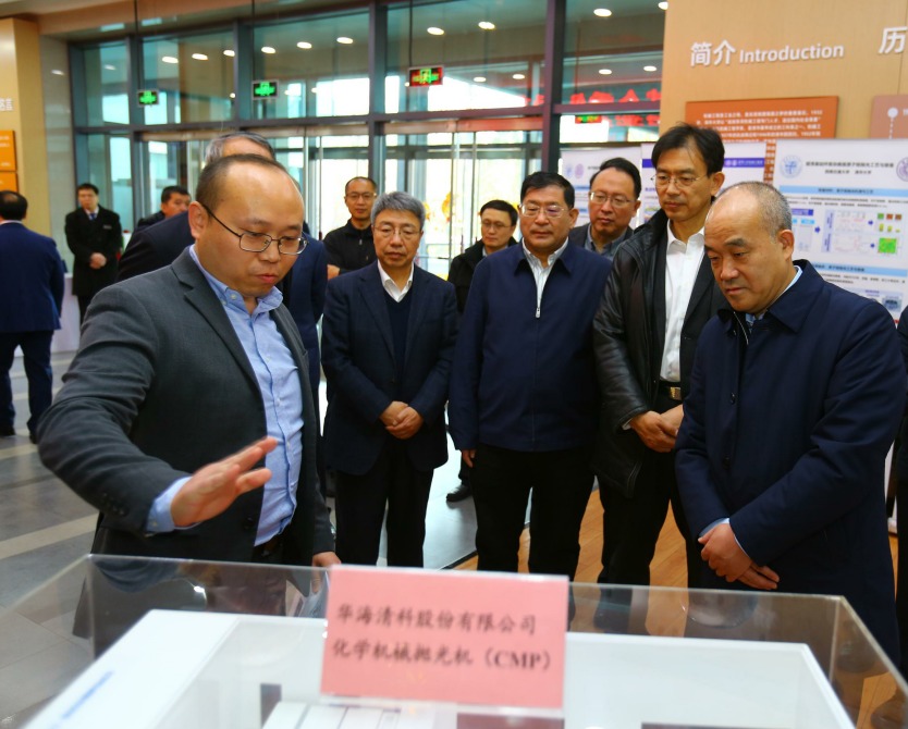 在机械工程系调研期间,窦贤康主任一行参观了高端装备界面科学与技术全国重点实验室,并听取了实验室主任、中国科学院院士雒建斌汇报实验室在化学机械抛光、光刻机双工件台、超滑理论与技术、生医机械与装备等方面的研究进展,以及对高端装备制造前沿领域的资助建议。