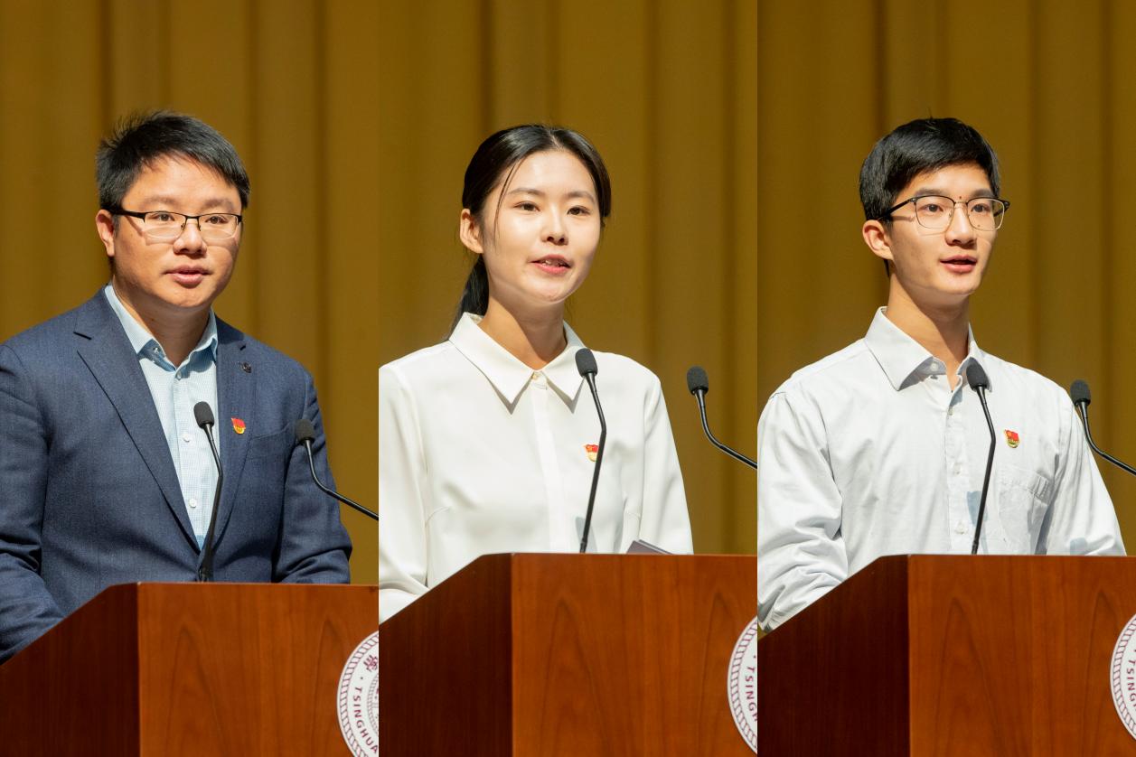 封硕、杜思睿、彭盛飞(从左至右)分别作交流发言
