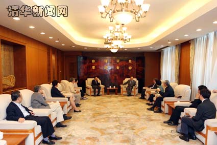 讲座前,李岚清与校长陈吉宁、校党委书记陈旭、校党委副书记史宗恺和方惠坚、王大中、贺美英、梁尤能等老领导亲切见面交谈。