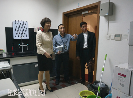 图为陈旭参观农工党支部主委化工系林章凛教授的实验室。