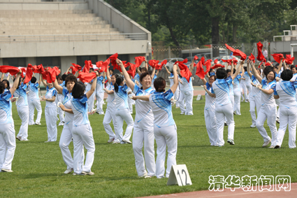 全校共有60个单位参加了运动员入场式及第九套广播体操表演,其整齐的动作、欢快的节奏,展现了广大教职工积极健康向上的精神风貌。广播操后,全校40个分工会的640名教职工登场进行“健身球”团体操表演,赢得了现场观众的阵阵掌声。