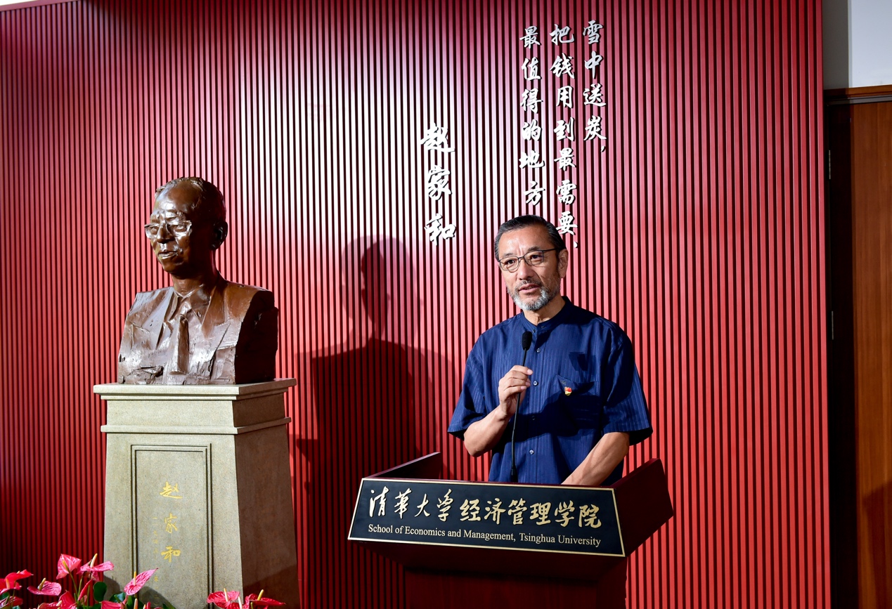 连辑为赵家和雕像题字,他表示,赵家和曾为兴华基金会提供关键性帮助,且长期支持基金会和经管学院工作,看到十年来基金会资助了七千余名高中生完成学业,自己深受感动。赵家和老师毫不利己,专门利人,对工作高度负责,对技术精益求精,对人们满腔热忱,为我们塑造树立了精神典范和标尺。