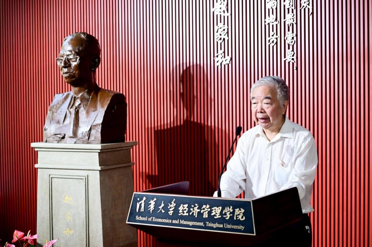 向波涛、连辑、陈煜波、白重恩、李鹤、陈章武共同为雕像揭幕。