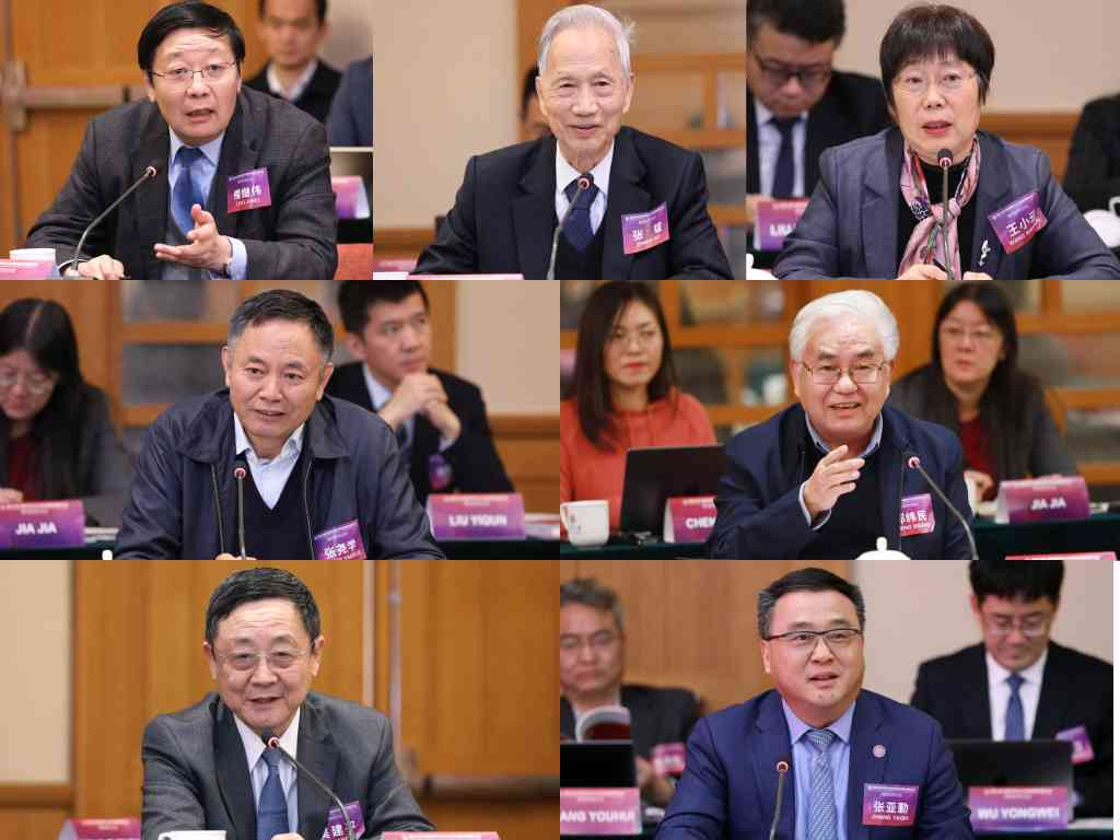 楼继伟、张钹、王小云、张尧学、郑纬民、吴建平、张亚勤(从上至下、从左至右)发言