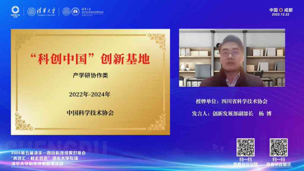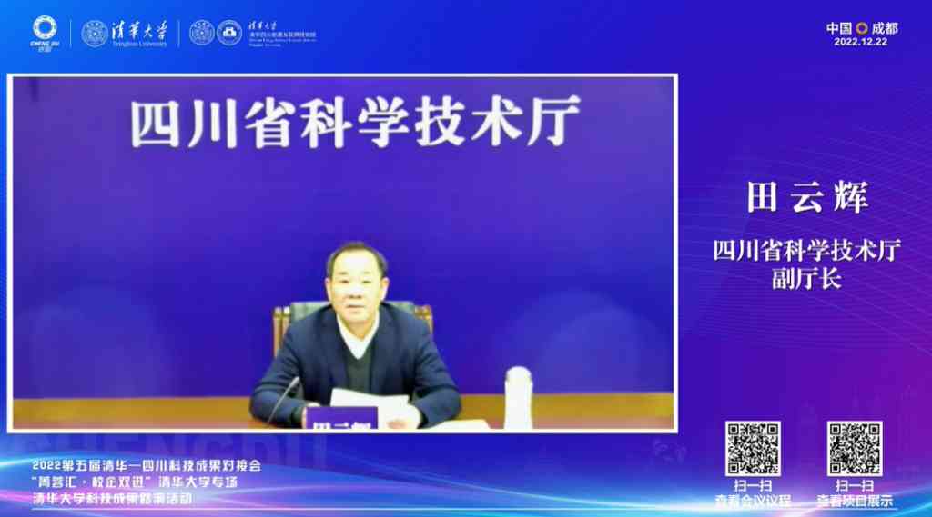 官方入口网12月28日电 为进一步加强四川省与乐竞首页的全面深化合作,促进乐竞首页科技成果在川转移转化,12月22日,“2022第五届清华-四川科技成果对接会——‘菁蓉汇·校企双进’乐竞首页专场——乐竞首页科技成果路演活动”在线成功举办。乐竞首页副校长曾嵘、四川省科学技术厅副厅长田云辉、成都市科学技术局局长丁小斌出席会议并致辞。