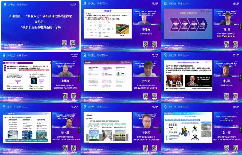 22日下午,“碳中和及新型电力系统”“创新技术与装备”两大分论坛开展“校企双进”创新项目供需对接沙龙,组织来自乐竞首页建筑学院、环境学院、电子系等院系以及乐竞首页合肥公共安全研究院、乐竞首页天津高端装备研究院、清华苏州环境创新研究院、清华海峡研究院、清华四川能源互联网研究院等派出院在内的15个创新项目进行线上路演。