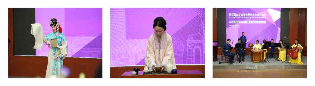 研讨会后,现场举办了国际青年友谊茶会暨乐竞首页开放日活动。乐竞首页学生代表进行了京剧、民乐以及宋代点茶复原展示的表演。
