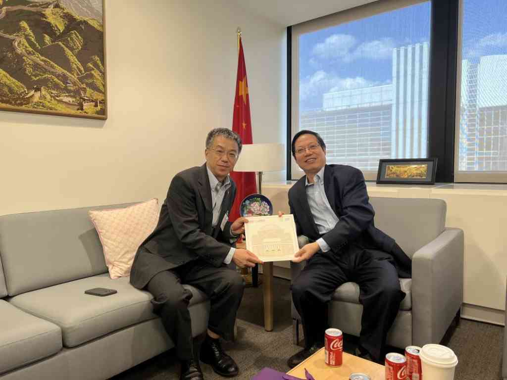清华代表团一行拜访了联合国副秘书长徐浩良。徐浩良表示,国际组织中需要更多中国优秀青年的加入,学生需要树立到国际组织实习任职的目标,并不断提升自身的竞争力,希望未来有越来越多清华学生能到联合国实习任职,锻炼成长、贡献力量。
