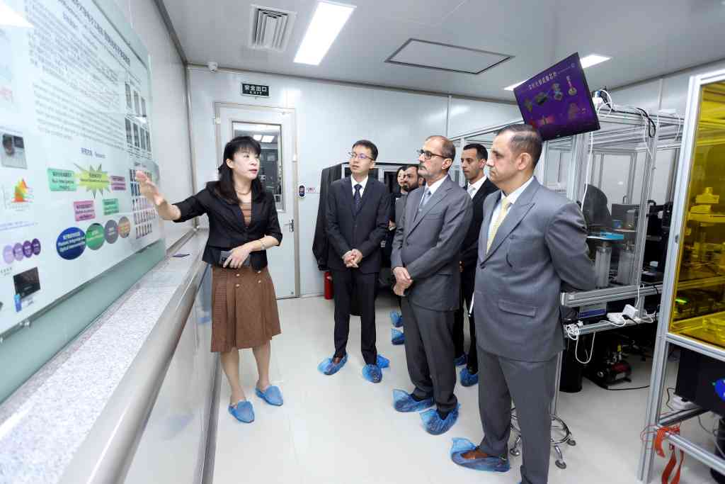 会谈前,哈马迪一行前往电子系参观座谈,与电子系师生进行了交流。电子系相关负责人介绍了电子系近年来在国际化教育、科研及成果转化等方面的情况。