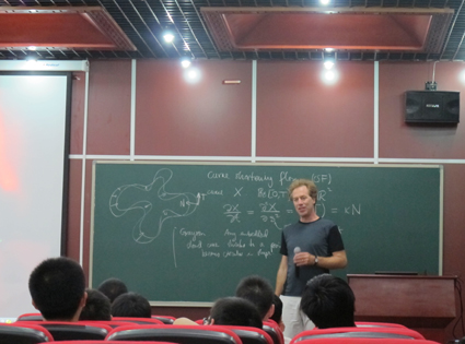 安杰明是几何分析和几何流研究方面的国际知名数学家。加盟数学中心不久,他就在著名的《美国数学会杂志》(Journal of the American Mathematical Society)上发表了一篇重要论文,并以清华为完成单位之一。2012年,他又与数学系李海中教授合作论文《三维球面中常平均曲率》,给出了三维球面中常平均曲率嵌入环面的完全分类,由此解决了微分几何中长期悬而未解的平克沃-斯特林(Pinkall-Sterling)猜想。在这一科研合作过程中,李海中的学生们也从安杰明那里得到不少教益。博士生韦勇说,安杰明开设的讨论班每周一次,聚焦前沿问题,也会请学生分享阅读文献的收获,是很好的交流形式。硕士生黄智杰介绍说,安杰明和他们的交流方式灵活多样,邮件沟通、每周二共进午餐或是在咖啡厅聊天,往往都能带来不少收获。安杰明总是能用新的方法做出更具原创性的成果,而非对现有成果的推广、延展,这一点让黄智杰印象深刻。
