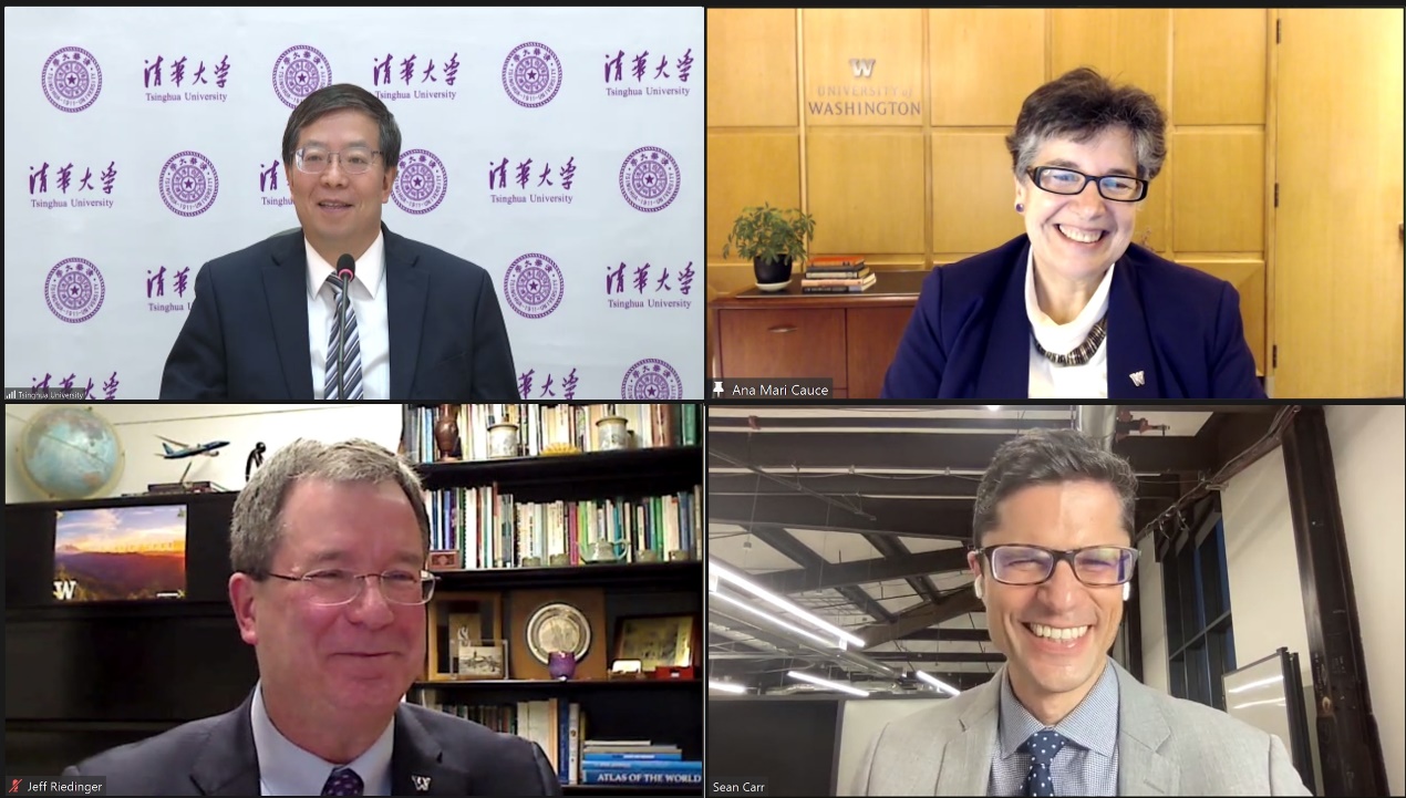 邱勇在会谈中表示,非常高兴与科斯校长在线会面,在过去的6年中,我们共同见证了GIX从成立之初到如今的快速发展。GIX是大学之间创新型合作的典范,同时也获得了产业界合作伙伴的大力支持。从北京到西雅图和贝尔维尤,我们的友谊随着两校合作的不断深入历久弥新。疫情造成的物理距离无法阻隔我们之间的“化学”联系,更无法阻挡两校对于共同培养技术创新人才的努力和期待。