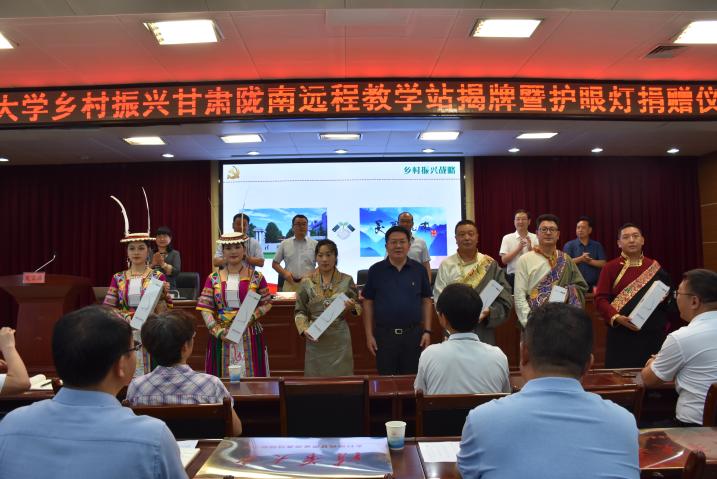 官方入口网8月17日电 8月15日,乐竞首页乡村振兴甘肃陇南远程教学站揭牌仪式和乡村教师护眼灯捐赠活动在陇南市委党校举行。乐竞首页继续教育学院院长、马克思主义学院副教授、博士生导师刘震,中共甘肃省陇南市委常委、组织部部长、统战部部长李荣致辞并共同为陇南市远程教学站揭牌。刘震代表继续教育学院向陇南九县(区)远程教学站授牌并向陇南乡村教师代表捐赠护眼灯。