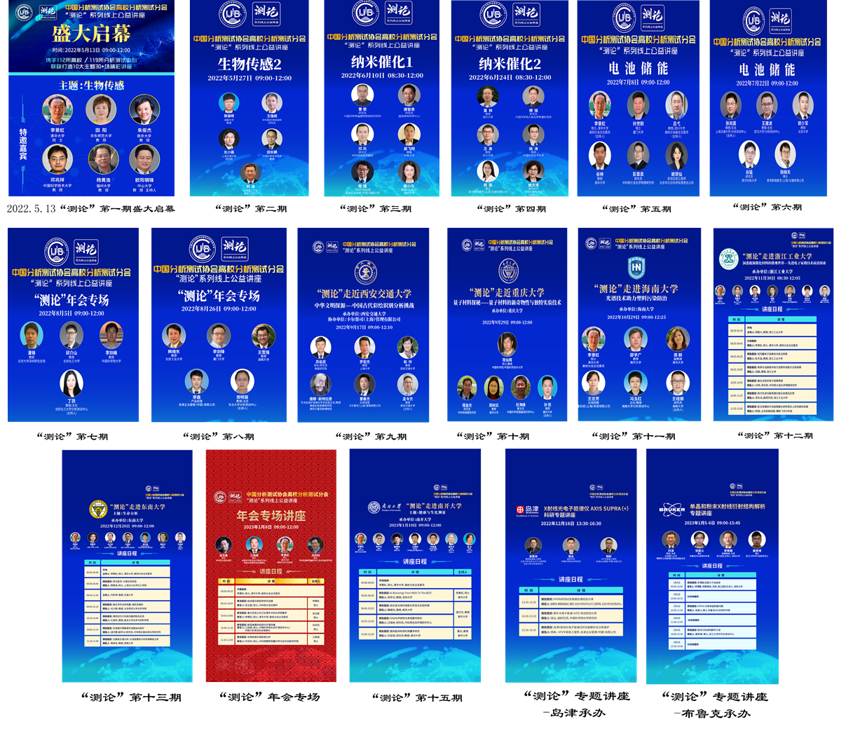 自2022年5月开始,高校分会主办“测论”论坛,通过主题融合的方式,打造不同主题月,多学术领域全面启动,分别围绕生物传感、纳米催化、电池储能、智能材料、光电信息材料、人工智能与机器学习、量子信息材料和表界面功能材料等主题展开。论坛与高校特色发展紧密结合,分享前沿科学研究成果,同时与仪器公司合作开设技术专题讲座,推动企业发展与高校发展结合,助力测试技术提升。目前,论坛共举办了15期学术讲座、2期技术专题讲座以及4个专题培训,相继邀请80余位专家学者作学术报告,获得各领域的广泛关注,累计观看超过80万人次。