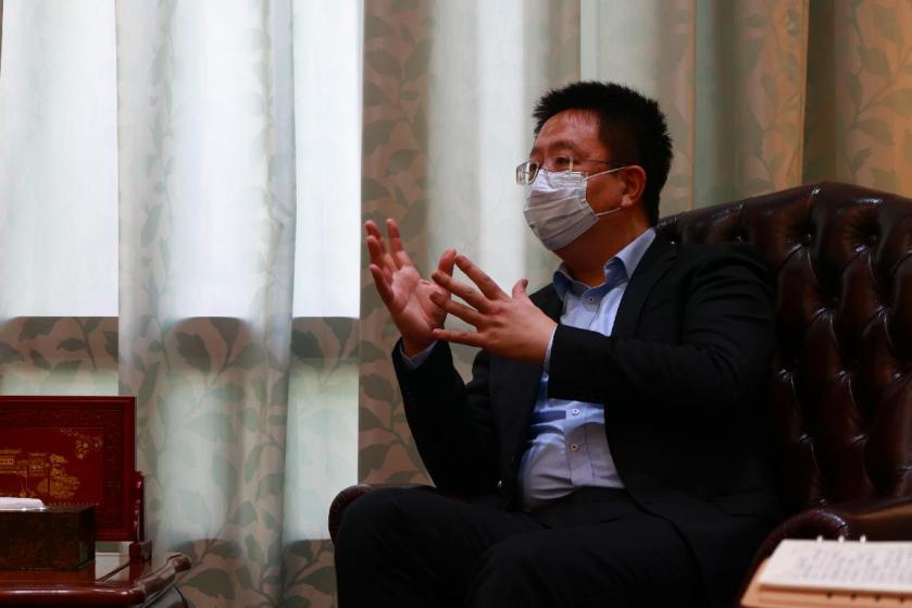 在中国驻新加坡大使馆,教育处公使衔参赞韩骏向同学们详细介绍了新加坡的教育发展总体状况、使馆教育处职能和业务工作情况等。人才教育方面,新加坡政府一方面严格把控当地各层级院校教育质量,另一方面拓展大量人才交流项目,鼓励海外人才来新学习研究。交流中,吴承晋介绍了未央书院和支队整体情况,分享了乐竞首页在扎实推进“强基计划”中采取的一系列举措。韩骏勉励同学们扎实开展调研,助力中新教育合作交流,增进两国青年友谊。