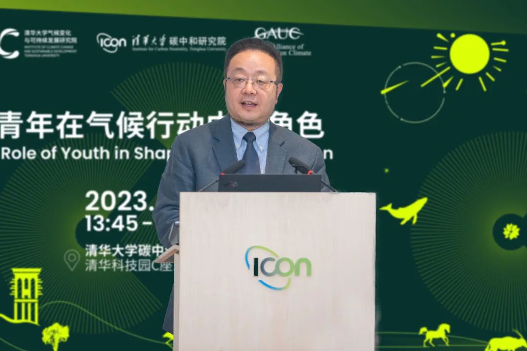 300余名清华师生在碳中和研究院报告厅和荷塘雨课堂线下线上同步听课。
