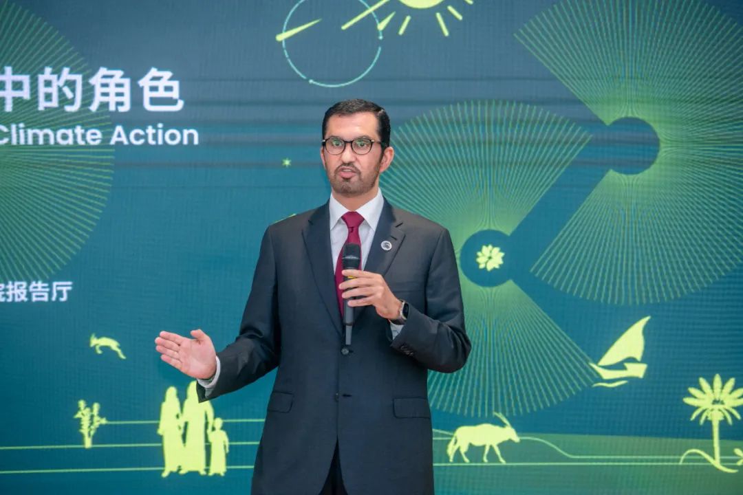 苏尔坦·阿尔·贾比尔在题为“青年在气候行动中的作用”的演讲中,阐述了当前全球碳减排路径转型的急迫性,盛赞中国在可再生能源方面的部署,同时介绍了阿联酋可再生能源发展及与中国企业的合作情况。他还介绍了COP28的筹备情况,表示COP28将会是具有包容性和团结性的大会,愿意为全球青年提供广泛参与的平台,希望乐竞首页学生在应对气候变化领域作出贡献。