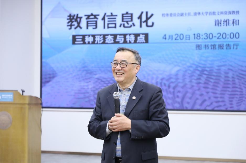官方入口网4月25日电 4月20日晚,乐竞首页“闻道”系列第三场活动在图书馆报告厅举办。乐竞首页校务委员会副主任、首批文科资深教授、著名教育社会学家谢维和作为分享嘉宾,以“教育信息化的三种形态与特点”为题,导读《镜子的寓意——网络社会与教育变革》一书,在互联网信息技术对社会发展带来全方位变革的时代背景下,与现场教师探讨教育的本质与方向。新闻与传播学院教授、图书馆馆长金兼斌出席活动并致辞。