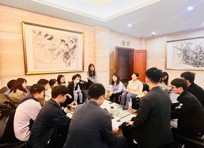 实践支队成员参访了绵阳科技城光子技术研究院,并同共青团绵阳市委、绵阳市青年联合会科学技术界别代表展开座谈。共青团绵阳市委书记、法学院校友李浩然致欢迎辞,并结合自己的工作经历介绍了绵阳市在科技创新、经济发展、法治建设等方面的丰硕成果,鼓励同学们毕业后到祖国需要的地方发光发热。恰逢陈能宽院士百年诞辰,支队成员一同观看了陈能宽院士纪念影片《底色》,随后齐诵陈能宽院士的诗词。