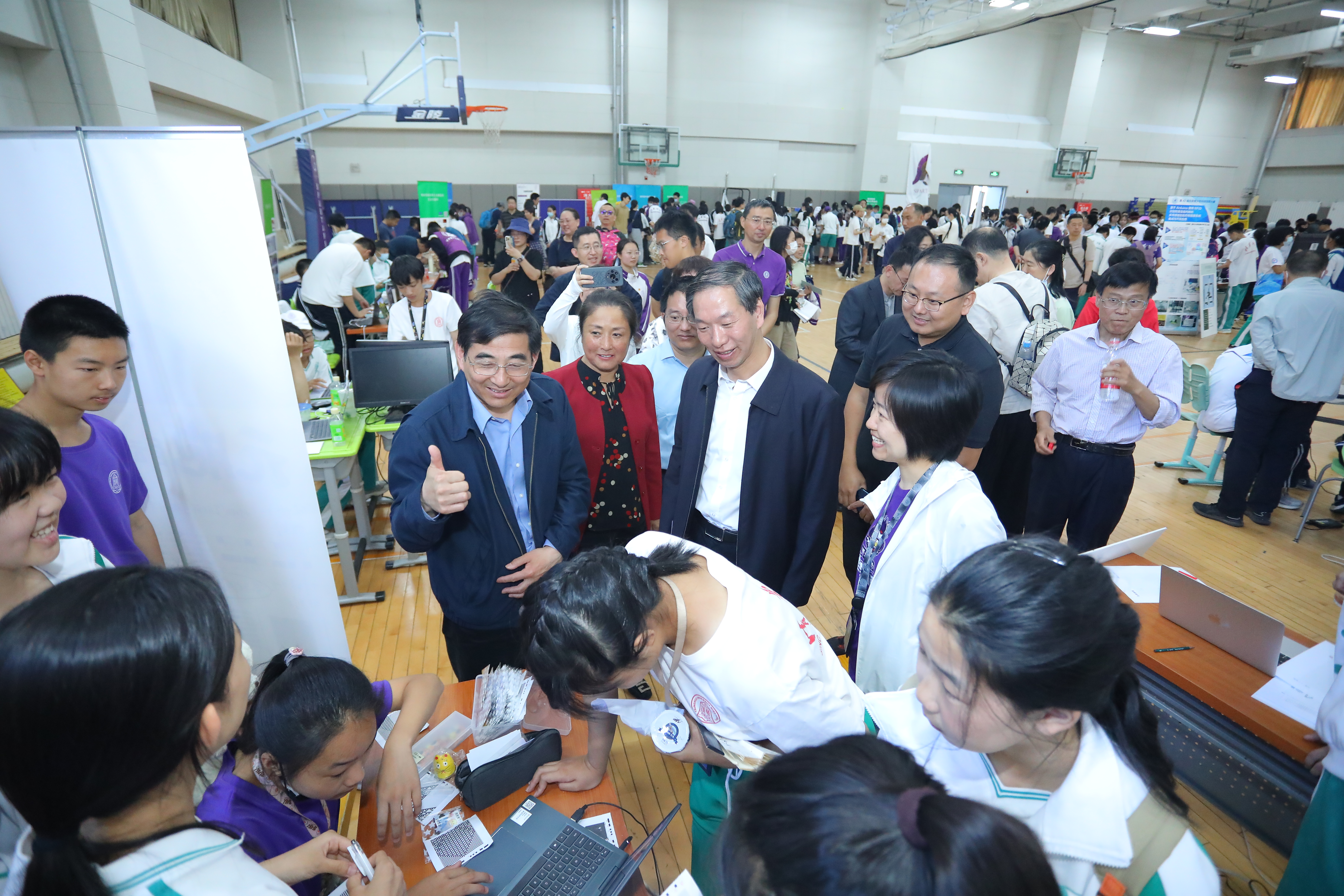 出席嘉宾和领导参观学生的创新项目