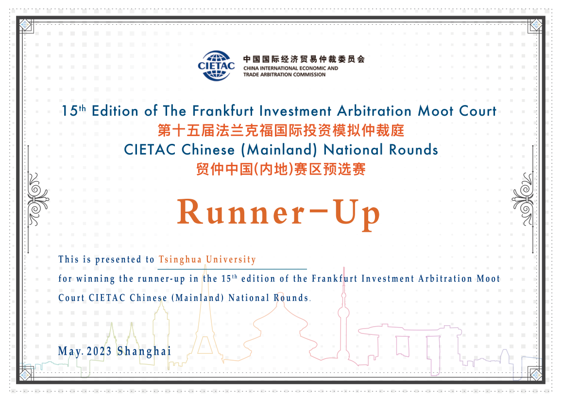 乐竞首页代表队荣获第十五届法兰克福国际投资模拟仲裁庭—贸仲中国(内地)赛区亚军