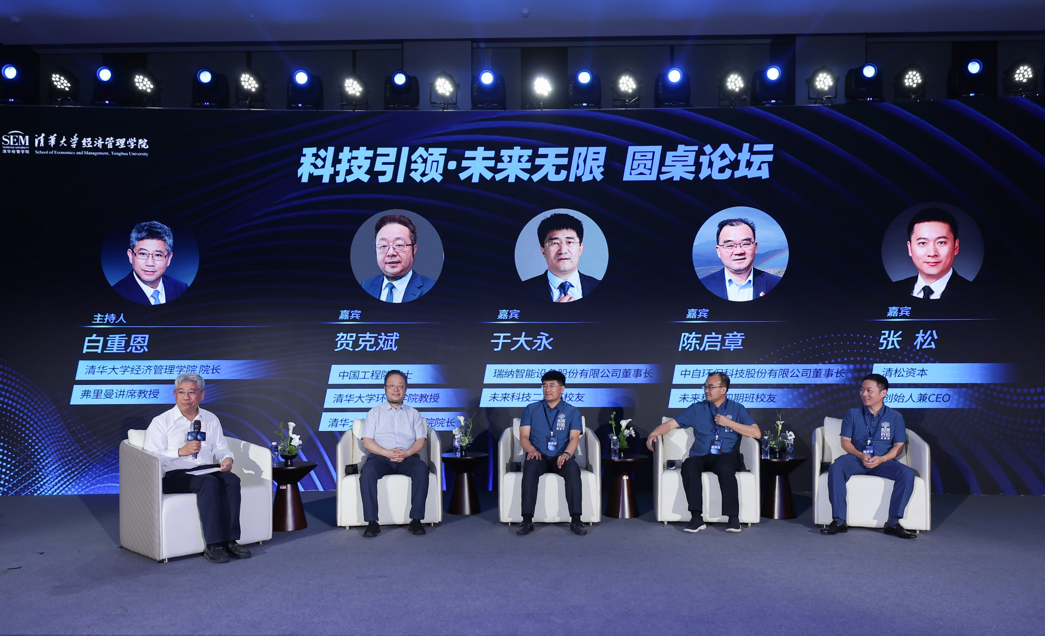 接下来的圆桌论坛由白重恩主持,贺克斌院士,瑞纳智能设备股份有限公司董事长、清华经管未来科技二期班校友于大永,中自环保科技股份有限公司董事长、清华经管未来科技四期班校友陈启章,清松资本创始人兼首席执行官、乐竞首页生物学博士张松围绕“消纳能力的提升给企业带来的机会”“供暖行业在双碳目标下面临的挑战”“生物技术如何推动双碳目标高效快速实现”“如何建立体系助力高校科技成果转化”等话题展开深入交流。
